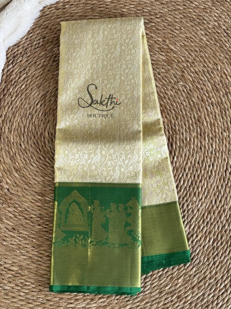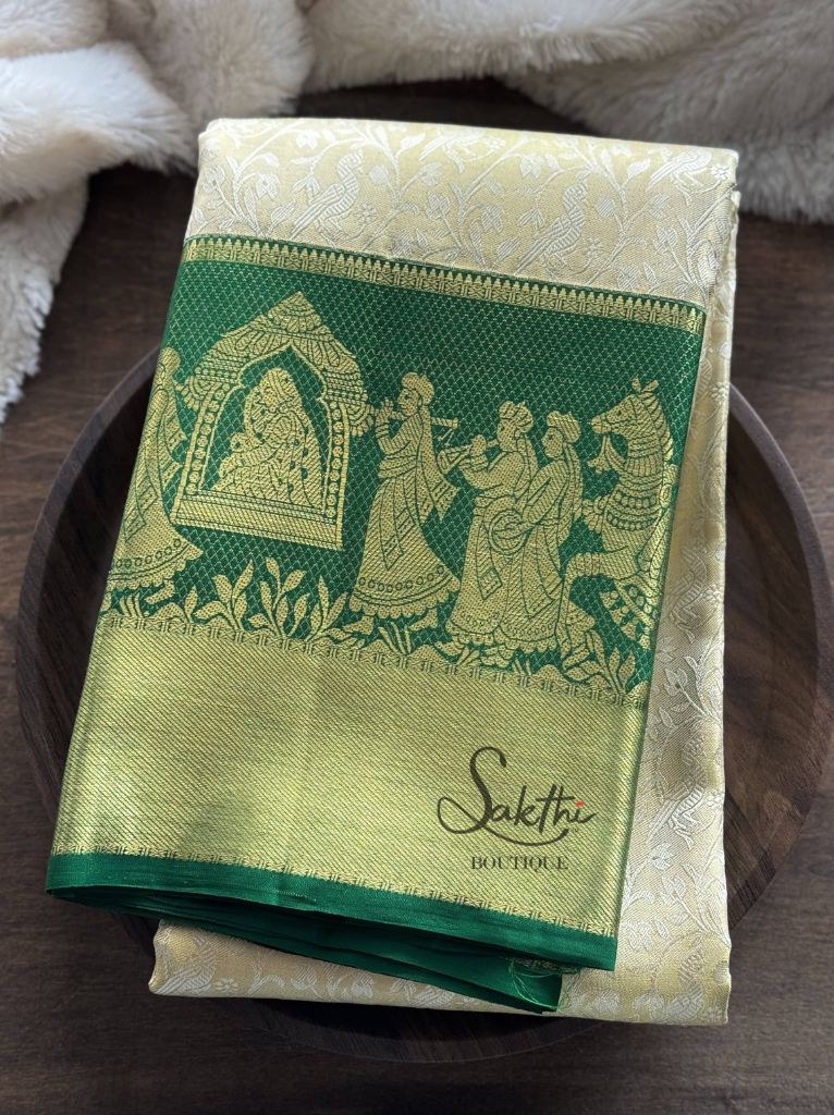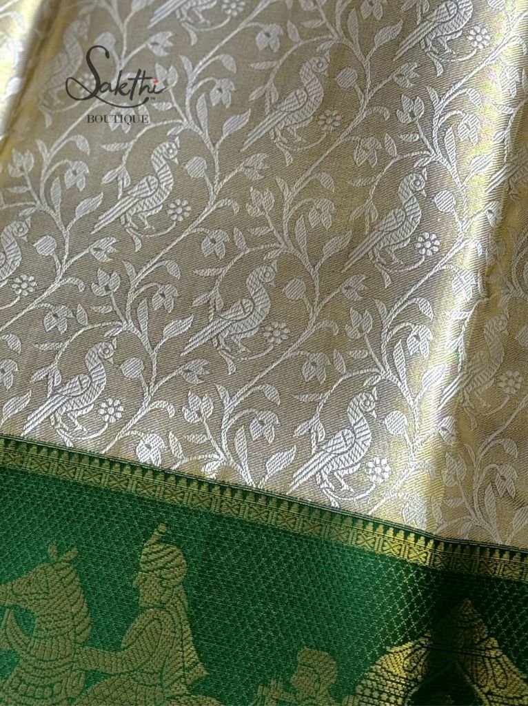 Pure Kanchipuram Bridal Silk Saree With Tissue Korvai Pallakku Border